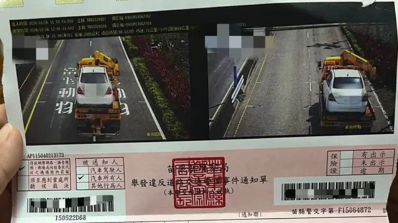 苗栗縣日前發生一起「被迫超速」烏龍罰單事件!一名車主因車輛故障委託拖吊車運送愛車,不料竟收到一張指控其在縣道140線超速13公里的罰單;離譜的是,違規照片清晰顯示該車正被固定在拖吊車架上,引發網友瘋傳並狂酸「這難道是自駕最高境界?」。對此,苗栗縣警察局交通隊坦承係因系統誤抓車牌及後端審核疏失所致,除將主動撤銷罰單外,也將針對失職人員追究責任。