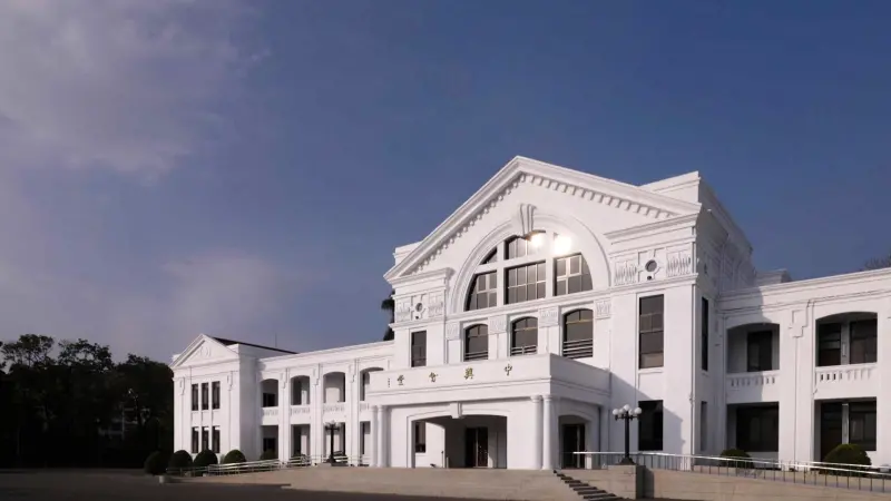 興建於民國1957年的中興會堂,過去長期作為省府集會、接待元首及外賓的重要場域,其典雅的白色建築造型與對稱之美,一說其規劃源自於戰鬥機外型構想而來,是中興新村最具代表性的地標。