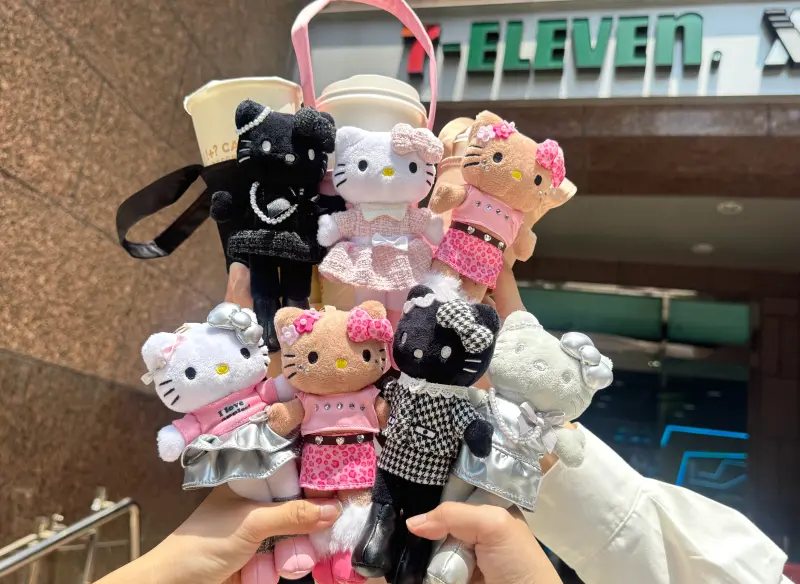 長腿KITTY為日本Kiddy Land與三麗鷗合作推出潮流公仔,7-11也跟上潮流,與三麗鷗合作推出55款限量周邊,日本版售價500元至700元不等的玩偶,7-11合作三麗鷗的版本只要299元就能入手,且最便宜的泡泡貼紙只要79元就能帶回家,超高CP值粉絲一定要記得搶!