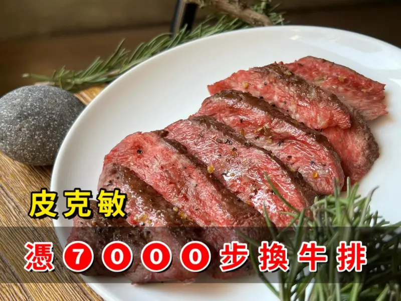 ▲只要前往餐廳出示遊戲畫面,達到指定步數就能換餐點,最高7000步可換一份牛排。(圖/春三朝午提供)