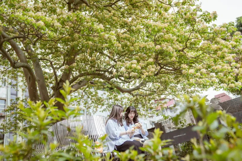 ▲加羅林魚木甜而不膩的「奶油黃」花朵,在春綠翠芽的襯托下綻陽熠熠,更恰巧撞色。(圖/台電提供) 為了讓達15公尺、約五層樓高的滿開花景更親民,台電2016年啟動公共藝術空間改善計畫,不僅拆除魚木所在角落圍牆、遷移電力設備,還透過不開挖工法,設置了市民賞花的共享空間及露天涼椅,讓民眾輕鬆縱覽魚木花景,並提供樹根健全的生長空間。台電也於2018年榮獲臺北市政府首屆樹木保護獎「台北樹益獎」肯定。