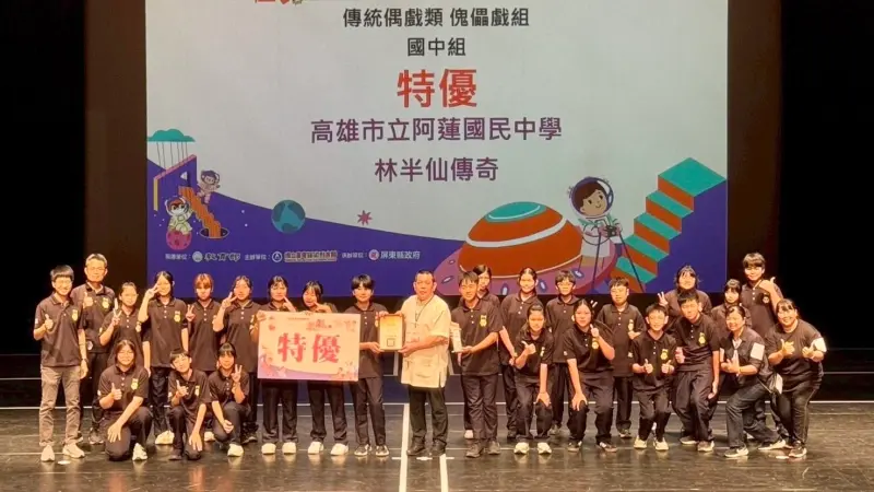 高雄市立阿蓮國中傀儡偶戲社在「114學年度全國學生創意戲劇比賽」中,學生憑藉精湛技藝演出劇碼《林半仙傳奇》,成功蟬聯傳統偶戲類「特優」獎項。這已是該校連續第 11 年摘下全國最高榮譽。