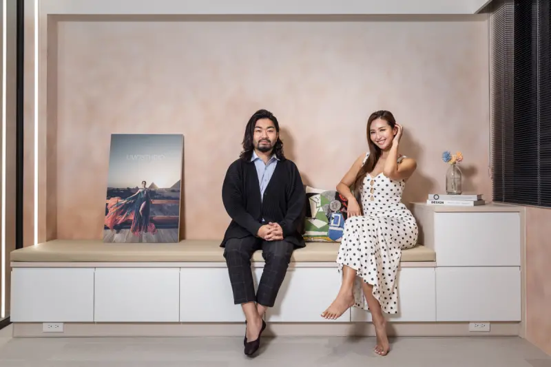 針對工作室的多元需求,歐德展現高度客製化實力。交誼廳透過「窗邊臥榻」規劃保留絕佳採光,避開窗簾安裝與清潔困擾。考量進門對角線為工作室「財位」,特意在臥榻角落升高櫃體並配置插座,方便薔薔安放招財小物,讓美感與風水並存。