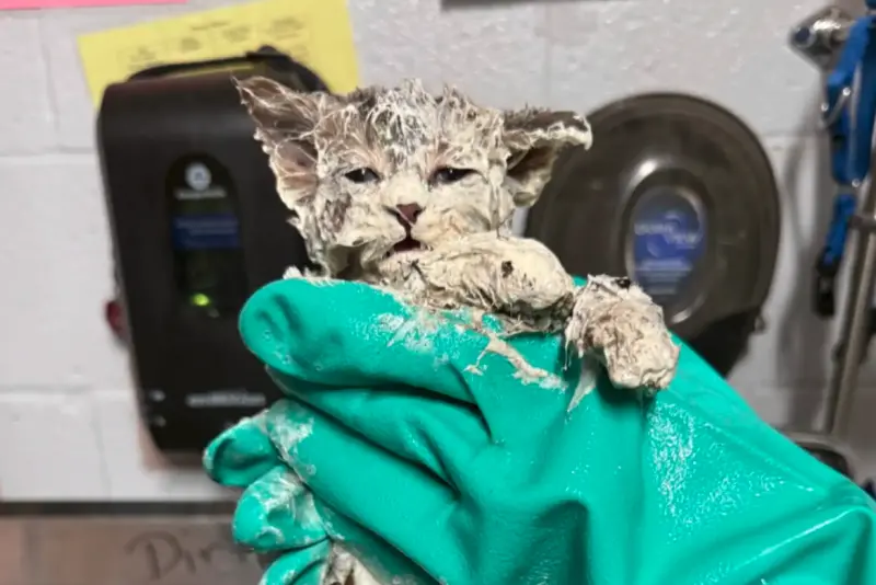 流浪小貓全身覆蓋工業黏膠!命懸一線被救回
