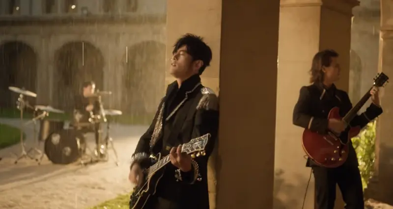 ▲周杰倫新歌〈誰稀罕〉MV在雨中拍攝,再度引發話題。(圖/杰威爾音樂提供) 周杰倫鼓手狂淋雨 粉絲笑:他做錯什麼了嗎?