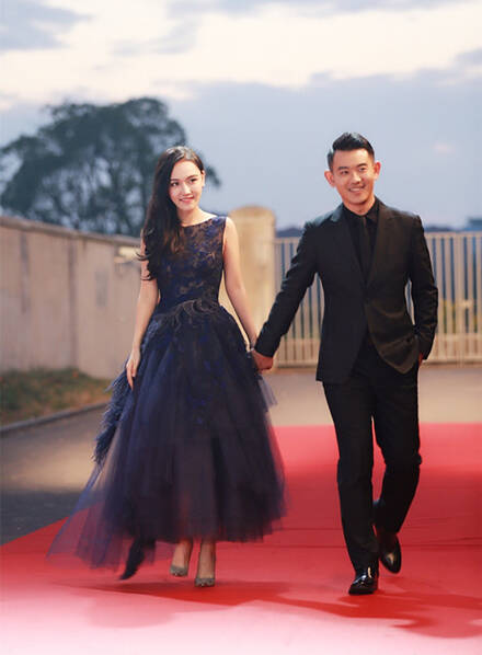 圖為孫驍驍與李響出席時尚Cosmo美麗盛典,身穿WECOUTURE高級訂製禮服裙。