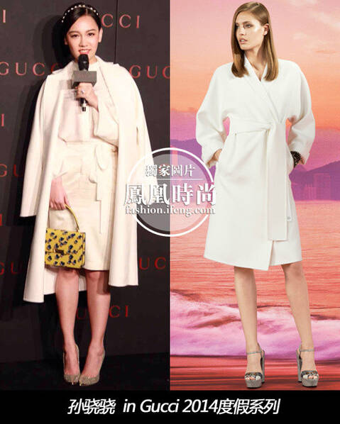 圖為孫驍驍亮相GUCCI北京新光店鋪重裝開幕慶典,身穿GUCCI2014度假系列裙裝。
