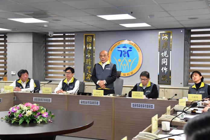 為因應武漢肺炎疫情,行政院長蘇貞昌29日視察中央流行疫情指揮中心,他訓示全體官員「我要人給人、要錢給錢;若未陳報,以致產生破口,絕對嚴辦」!