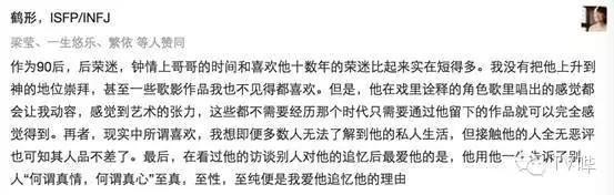 張國榮的粉絲們都稱作『榮迷』,『後榮迷』則是指在張國榮去世以後,才迷戀上張國榮的粉絲們。大多數的『後榮迷』們都是嗶寶身邊這樣的90後、00後年輕人們。