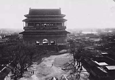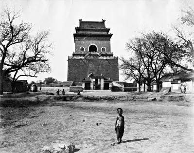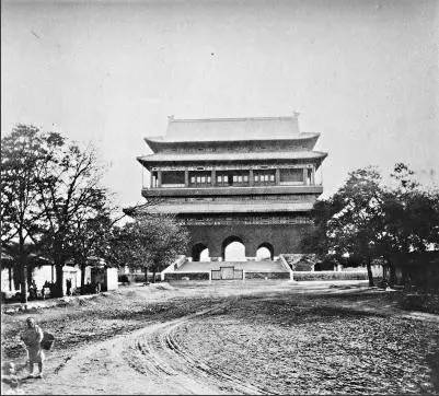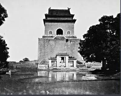 1860年,英法聯軍入侵北京,法軍中負責地圖測繪的查爾斯·杜賓上校在安定門附近的城牆上拍下了這張鐘鼓樓的合影。它是目前已知最早的鐘鼓樓照片。