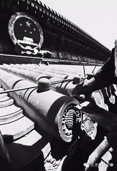 為保證工程安全和機密,施工期間整個城樓被圍了個嚴嚴實實。於是,這段時間的天安門留影中,天安門城樓的位置都是一座巨大的席棚。天安門不為人知地『消失』了。