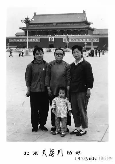 1970年『五一』,一家人在天安門前留影。她們身後是剛剛重建的天安門城樓。