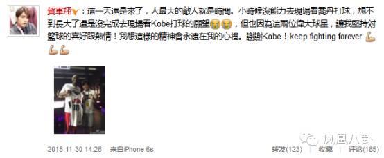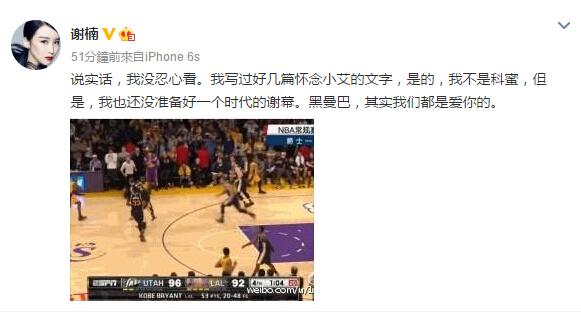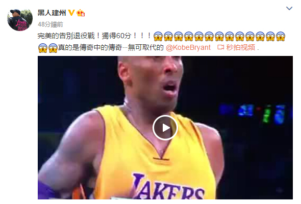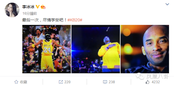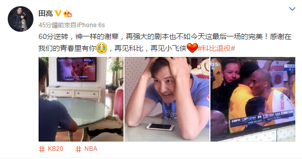 他們紛紛發微博,陪伴見證了Kobe的謝幕: