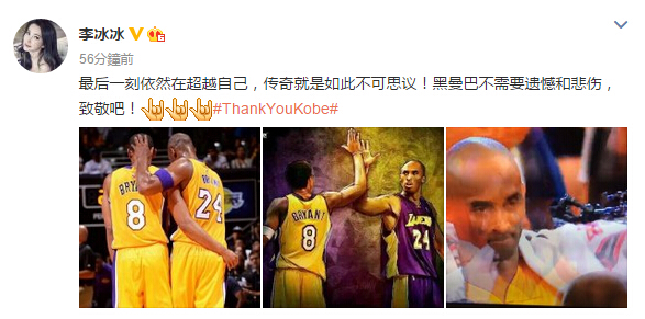 李冰冰曾公開示愛Kobe,稱這樣的男人怎麼能不愛?