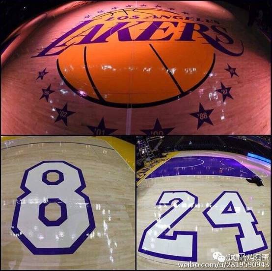 史坦波球場今天的地板一邊是8號,一邊是24號,這是Kobe戎馬一生的球衣號碼: