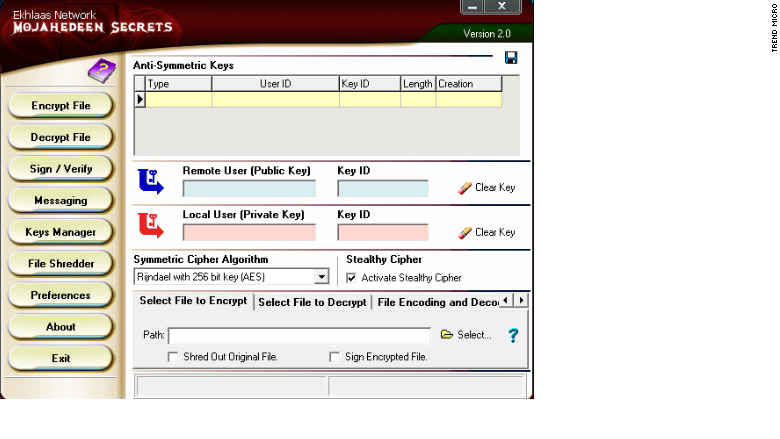 趨勢科技公司還研究了恐怖分子自己開發的『定製』工具。一款名為Mojahedeen Secrets的工具能夠加密電子郵件,2007年,其作為流行隱私軟體PGP的替代品推出。這是首款特別為IS恐怖分子打造的專業軟體,目前還不清楚開發者是何人。