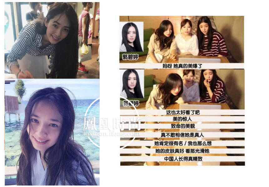 郭碧婷的魅力受到了廣泛的矚目,在南韓一個節目中,南韓的男女嘉賓在看到郭碧婷後都反應誇張,女嘉賓表示『這也太好看了吧?』『都不敢相信她是真人』在年齡上她們也認為32歲的郭碧婷只有26歲,最後大呼『長得真精緻』。讓人忍禁不俊。