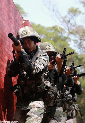駐香港部隊女特戰隊員實施搜索清剿。