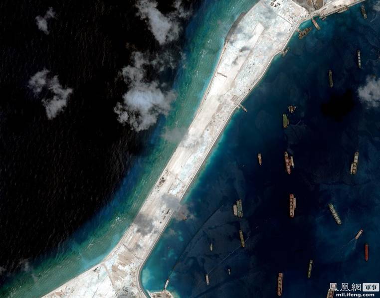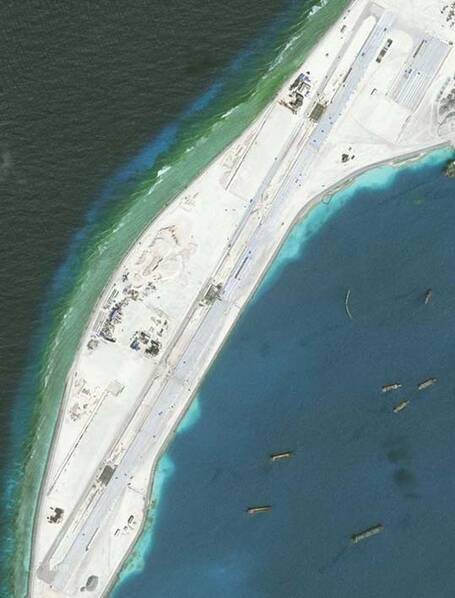 大陸在南沙7座島礁進行填海造島建設,在位於西北方向的渚碧礁、西南方向的永暑礁以及東側的美濟礁分別修建大型機場跑道。今年上半年,永暑礁已完成民航客機試飛。