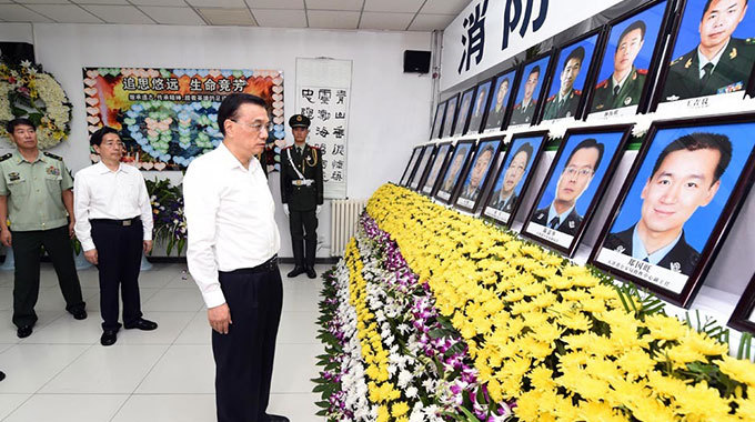 對於在事故中犧牲的非現役專職消防員,李克強表示:『英雄沒有編外。』