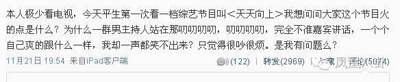 他還和歐弟因為《天天向上》撕起來,他說天天向上很吵很煩,毫無笑點。