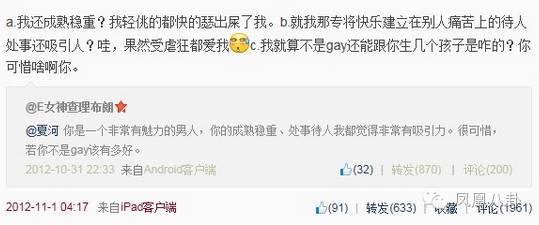 其實了解夏河的童學們肯定知道,他一向以言辭犀利著稱,這點對罵的功夫,呵呵,只發揮了我們夏大大30%的功力,更大尺度的對罵……小妹被就不截出來了~