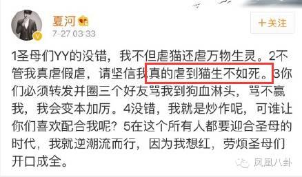 愛護小動物的網友們看到這兒哪能忍啊,紛紛指責夏河虐貓,夏河的個性哪兒會妥協,雙方罵戰就此展開。↓