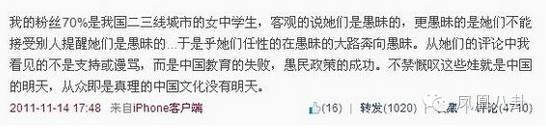 夏河喜歡稱他的粉絲為『女腦殘』和『聖母們』,動不動就說他們愚昧。↓
