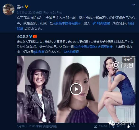 而秦凱還會默默的支持著女票,比如幫女票的廣告打廣告~