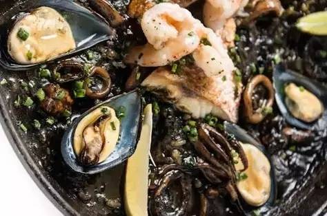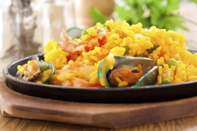 西班牙海鮮飯是巴塞隆那的驕傲,種類繁多,顏色也是紅黃黑白十分鮮豔,最有代表性的是什錦海鮮飯,海鮮使用的種類最多,用料最足。