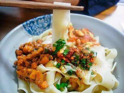 biangbiang麵是陝西傳統麵食,因製作過程中有biang、biang的聲音而得名,並被列為陝西八大怪之一。麵條為手工擀製,寬似褲帶,口感勁道,味道酸辣鮮香。
