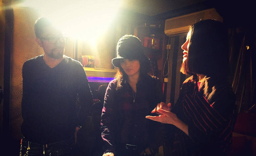 樊馨蔓、肖齊、尚雯婕商討工作。