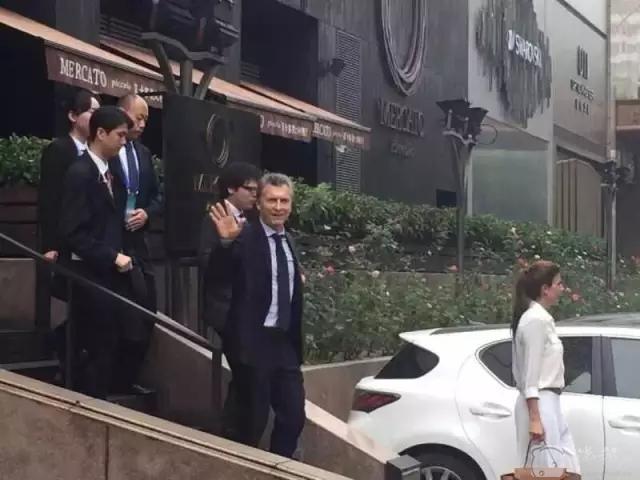 4日中午11點多,阿根廷總統馬克里及夫人,還有10多人隨行人員,到達杭州大座D座莫卡多義大利餐廳用餐。在此之前一兩個小時,他的工作人員已提前來餐廳看過環境,並拿走了菜單。