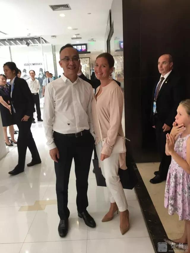 16:00 新解百集團董事長童民強先生與總理夫人在CHANEL店鋪前合影,並在A座正門口送別加拿大總理夫人一行人,後總理夫人乘車離開杭州大廈。