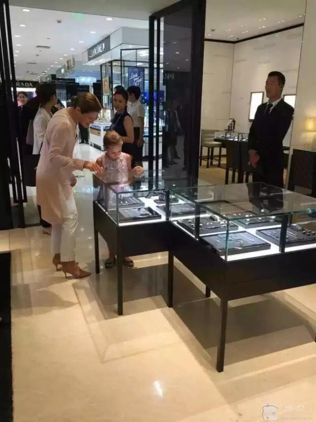 15:55 總理夫人一行人來到A座1樓,準備乘車離開。在等候車隊到來前,總理夫人及女兒來到CHANEL專櫃,在店內瀏覽了一圈。