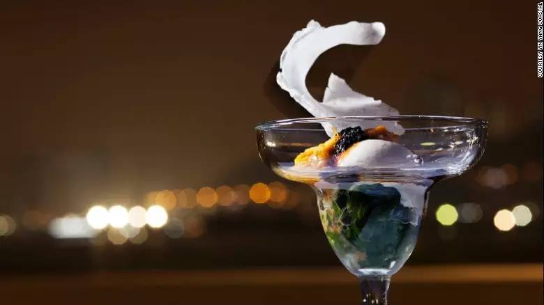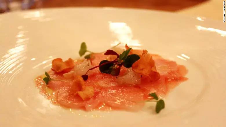 另外,Dine Art在食材搭配上也充滿了匠心,頂級食材包括牛肝菌生牛肉片、番茄汁、活海鰲蝦、羅勒和洋薑片。除此之外,食客們還可以享用到搭配咖啡果凍和麵包屑的提拉米蘇。