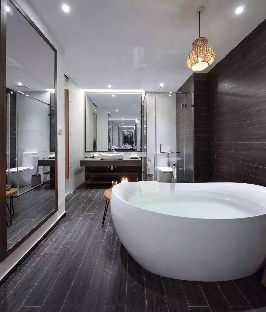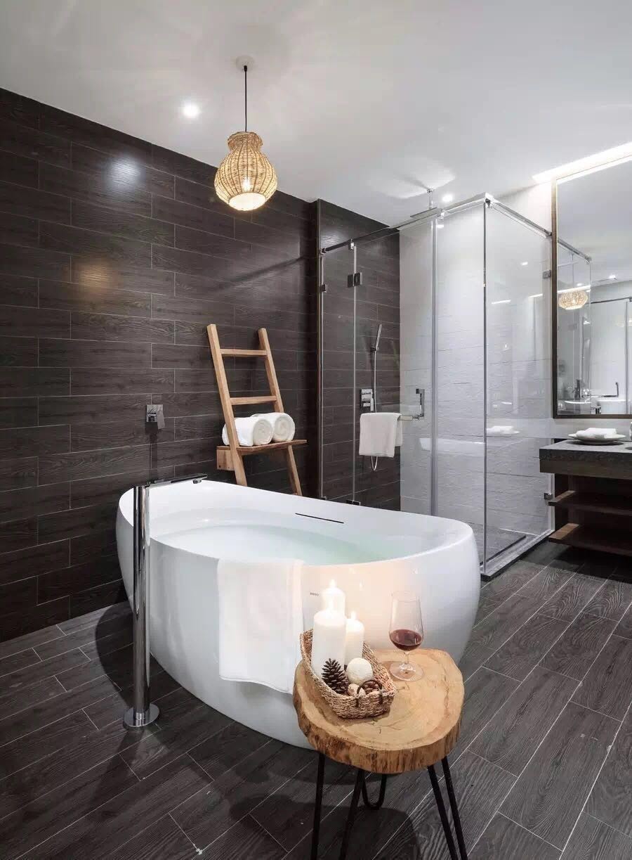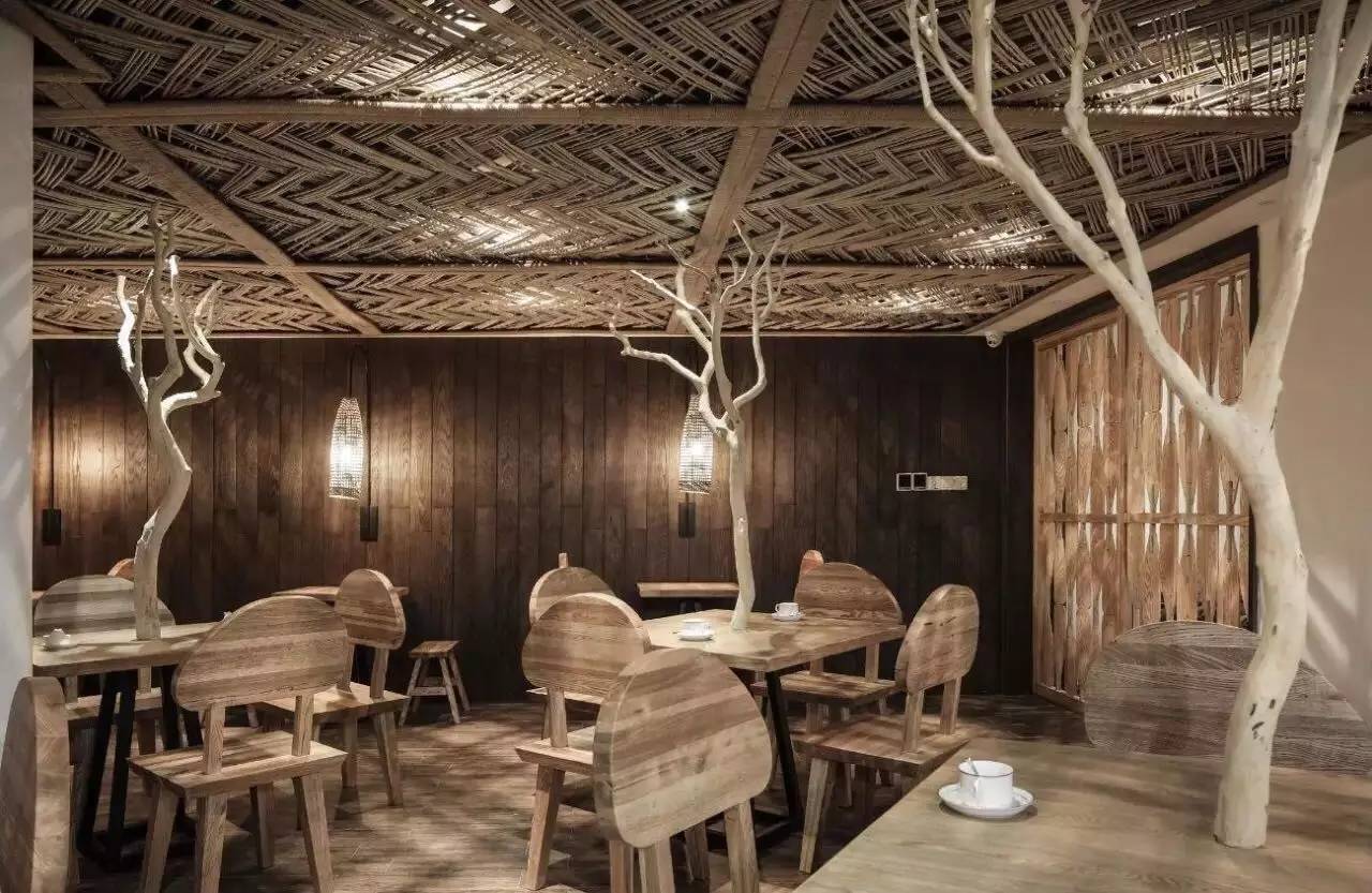 由各種材質拼接而成的牆面設計,不僅巧妙的將兩件內室自然分割,給人以抑揚頓挫的含蓄美感,而那自然古樸的牆面設計,不僅突顯的是自然的繁複和豐富,更是將一種顏色之間的過渡和配合一一表現,由深到淺的和諧顏色配比,由濃到淡的顏色自然過渡,仿佛是生長的森林一般,帶給人無窮的生機之感。