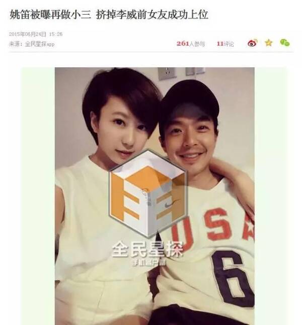 『週一見』後,姚笛被傳遇見過一次愛情,那就是已經有點flop的灣灣偶像劇男星李威,那一次,姚笛一樣被指是小三插足