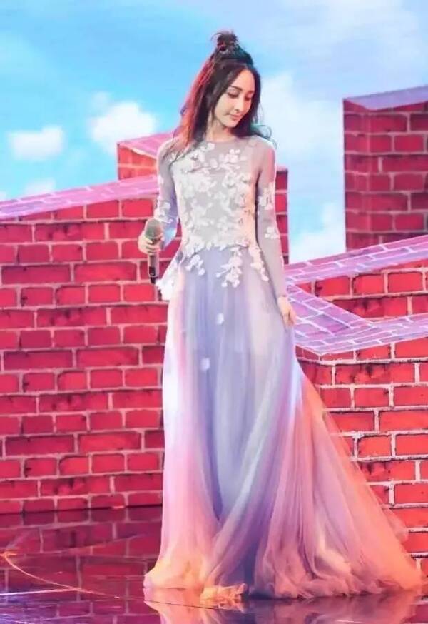 姚笛穿著一襲淡紫色的紗裙亮相,梳著標誌性的丸子頭,乍看之下,扮相還是很美很仙的: