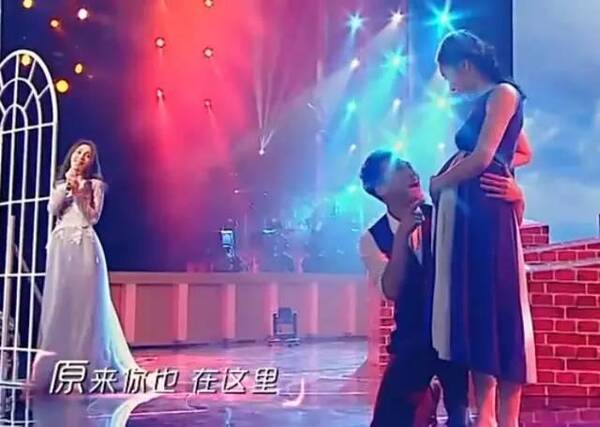 姚笛遠遠的望著『孕婦』和她的『老公』相親相愛,靜靜地唱著歌: