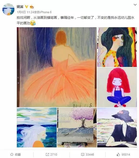 自拍裡也很難找到姚笛露齒大笑的照片: