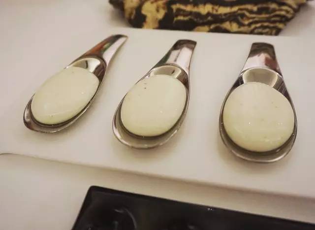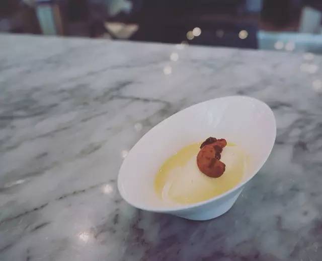 不是那種小清新的酸奶,是相當重口味的印度酸奶,混合了孜然,茴香,香菜籽等香料,製成一枚膠囊,一口爆開,層次和味道都很豐富,我喜歡這一道。