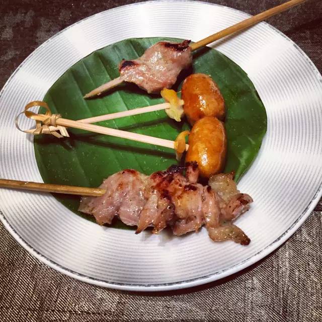 很街頭感的兩根串串,一串牛肉一串清邁香腸,很嫩,還不錯吃。