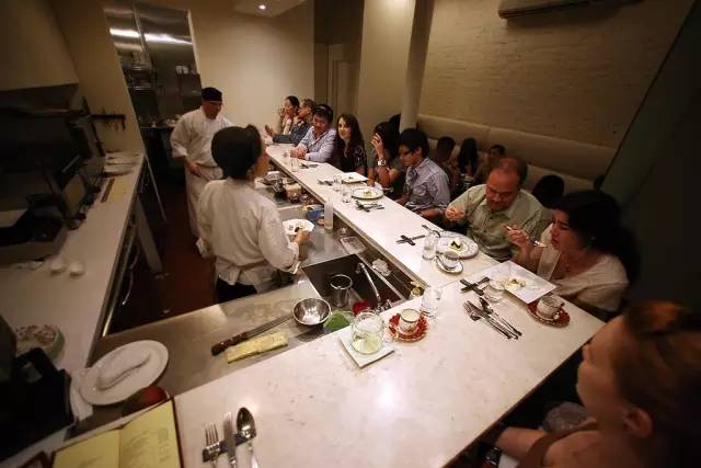 ChikaLicious不是把漂亮的蛋糕擺在玻璃展示櫃裡,而是類似日式壽司店的型態打造了Dessert Bar,只有十個位置,主廚在食客面前擺盤製作。