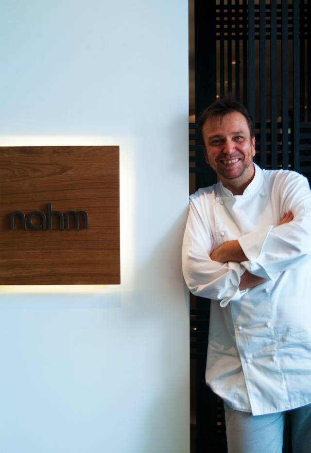從澳洲到英國,David 把泰國菜帶上世界的舞台後,又回到泰國開了nahm曼谷分店。nahm開在Metropolitan酒店的露天泳池邊,內部設計借鑒了暹羅古都大成廟宇的元素。