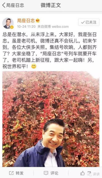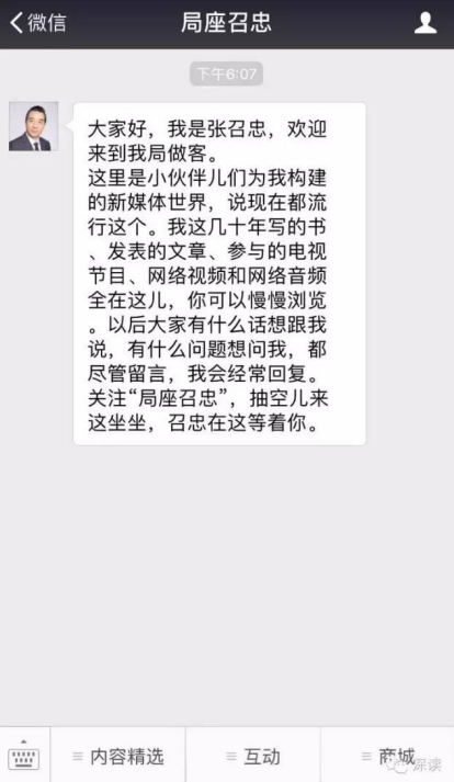我們有個局座召忠微信公眾號團隊,他們在運營張召忠開講微博,所以都是這些年輕人教我折騰微博。