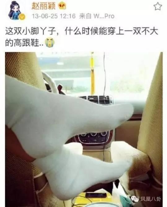 答案是趙麗穎有一雙特別小的腳啊!如果不說這是趙麗穎的腳,說小學生都沒人懷疑吧~