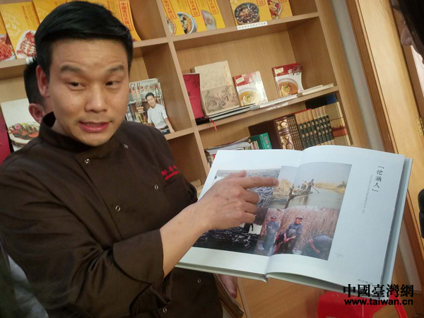 『這本《大陸蓮藕菜》是我編寫的,裡面都是我們研發創新的蓮藕菜品。這裡面所有的圖片都是我自己拍攝的。』 鄒志平從書架上取下一本書打開來給記者看。