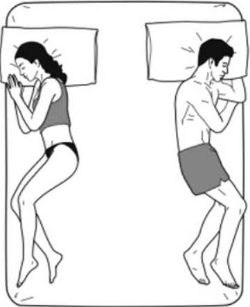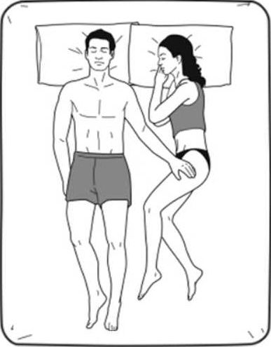 姿勢不定,手腳或搭在對方身上,或和對方的手腳接觸,你們個性獨立,但在多數問題上能達成一致。主動伸出手腳的一方依賴性更強,需要確認枕邊人一直都在。