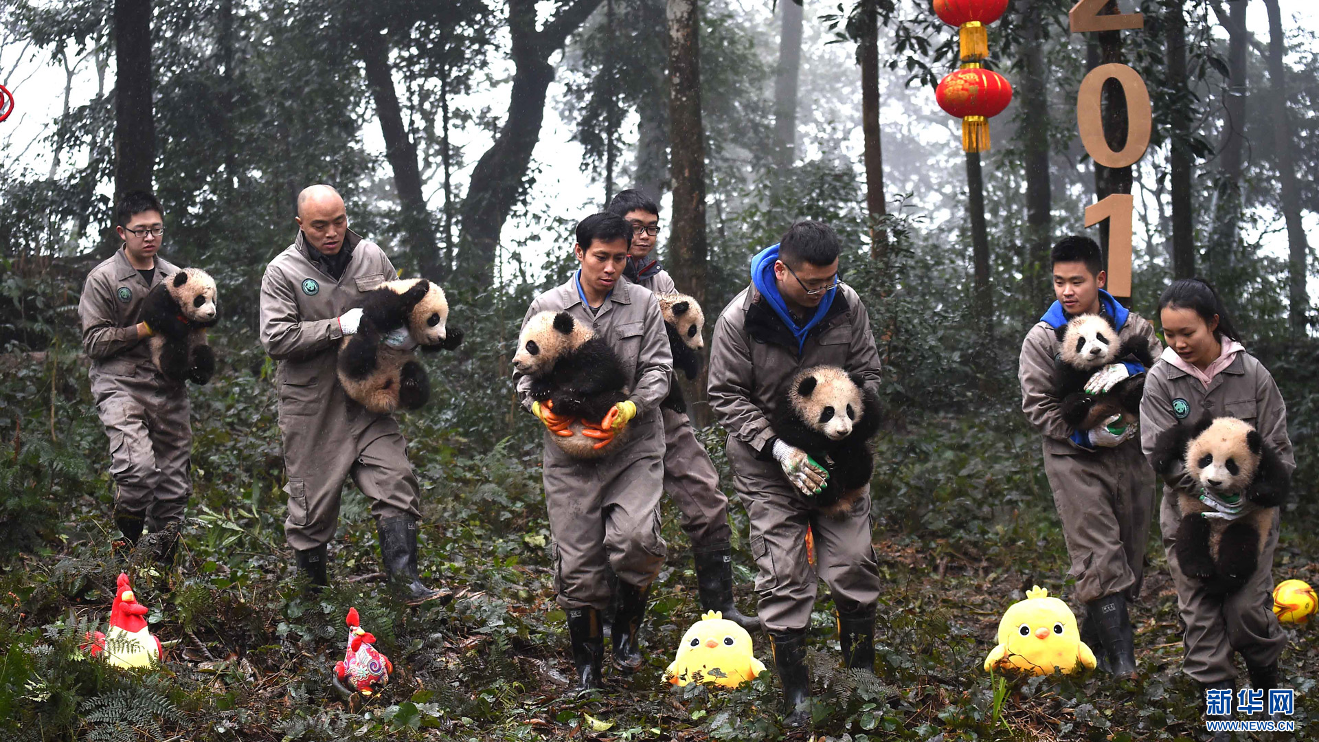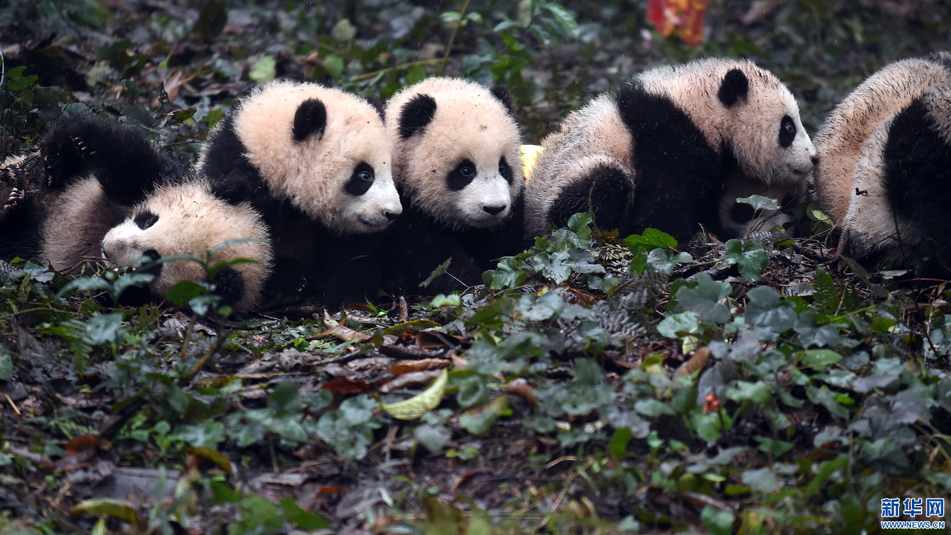 大陸大熊貓保護研究中心2016年出生的8隻大熊貓寶寶1月11日集體亮相,為即將到來的新春佳節增添喜慶。